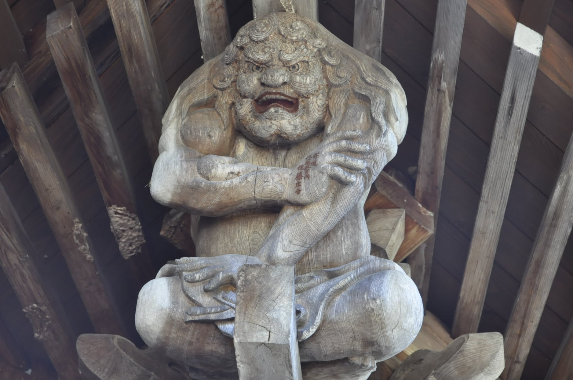 田子内地区にある天神社です。村内で最も古い創建で、1052年と言われています。 学問の神「菅原道真」を祭神としている神社です。 神社を支える支柱には、それぞれ違う表情の力士像が鎮座。地元では四隅をしめくくるという意味で、「隅っこ背負い(すまっこしょい)」と呼ばれています。